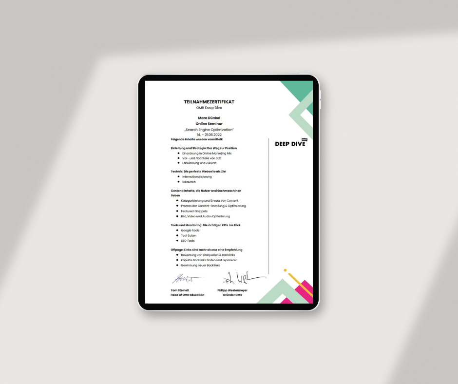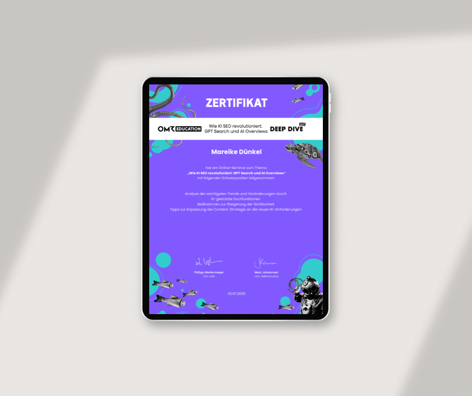 Zertifikate in SEO, Social Media Ads, Newsletter, GPT Search etc.